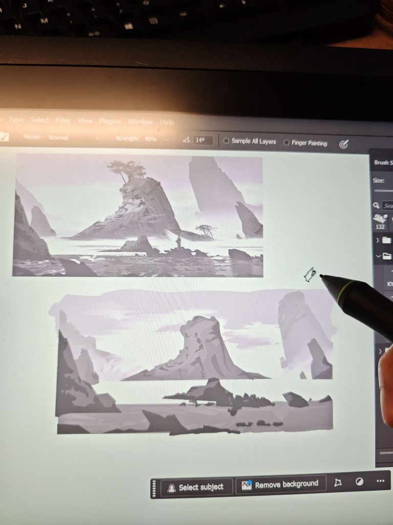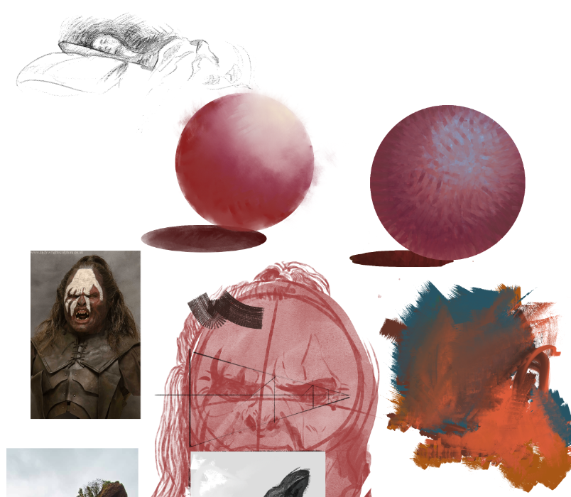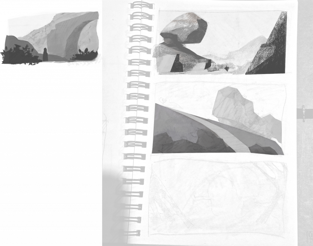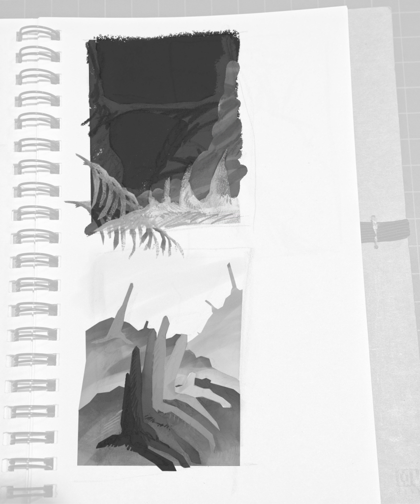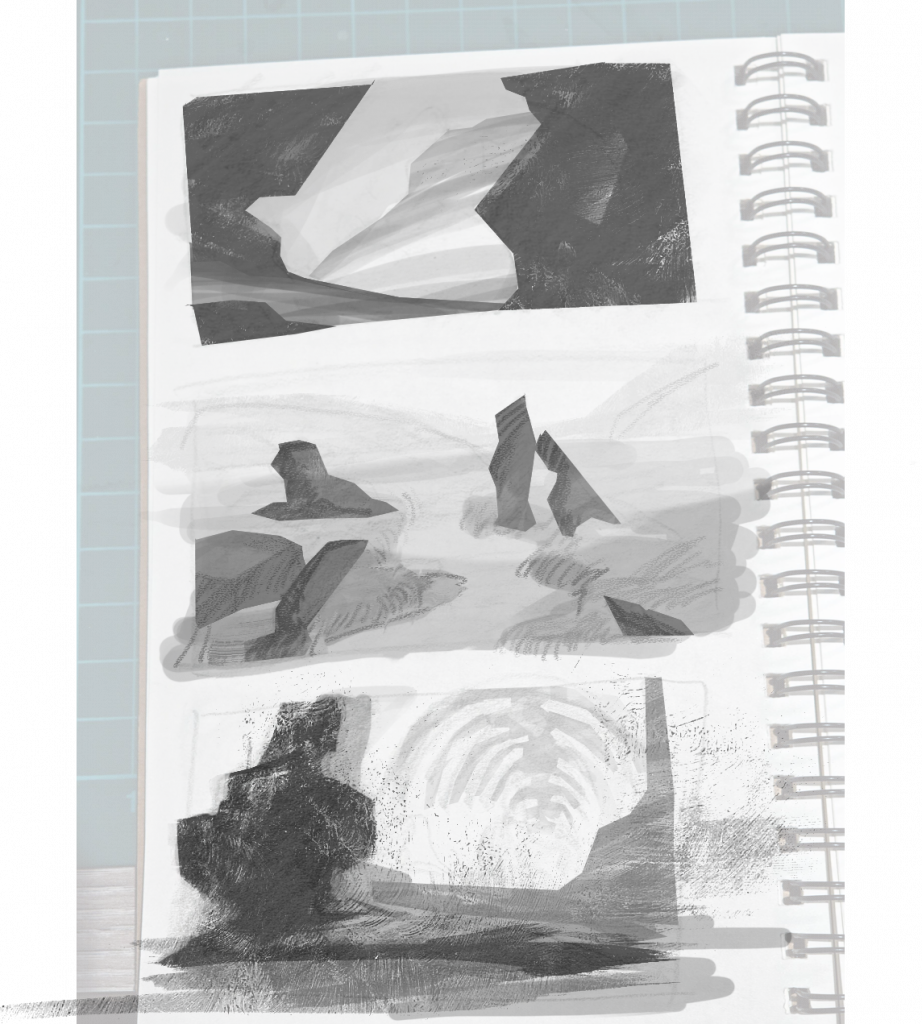 These were slightly better. Even though I wanted to use broad texture brushes to quickly put the idea down, I also quite liked mark making with just strokes.