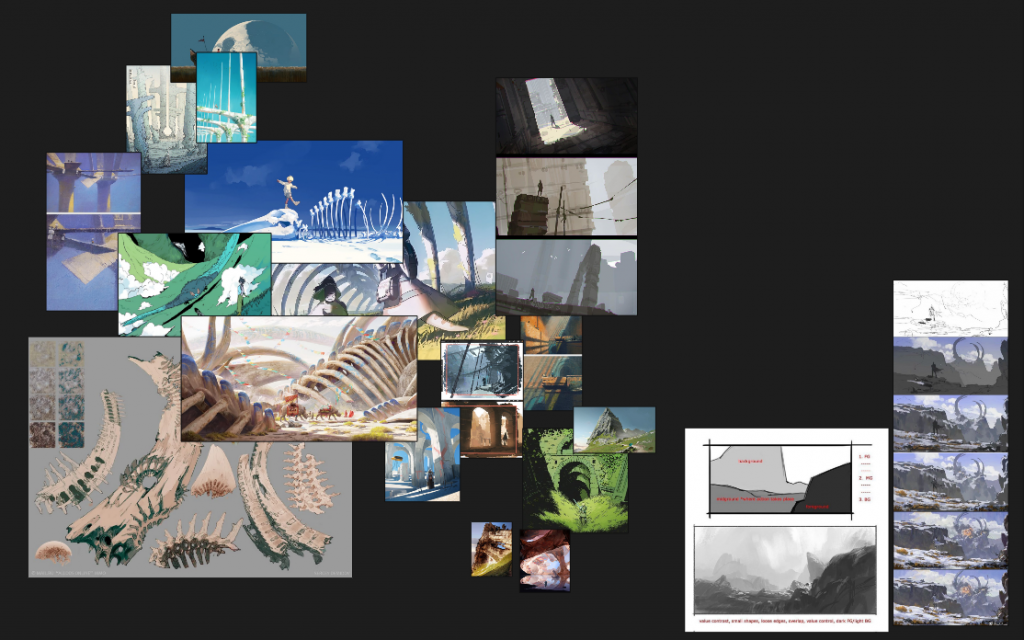 I also started leaning into this large ancient bone structure embedded in the landscape that I thought was cool.